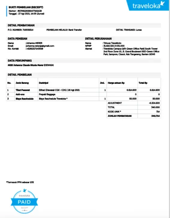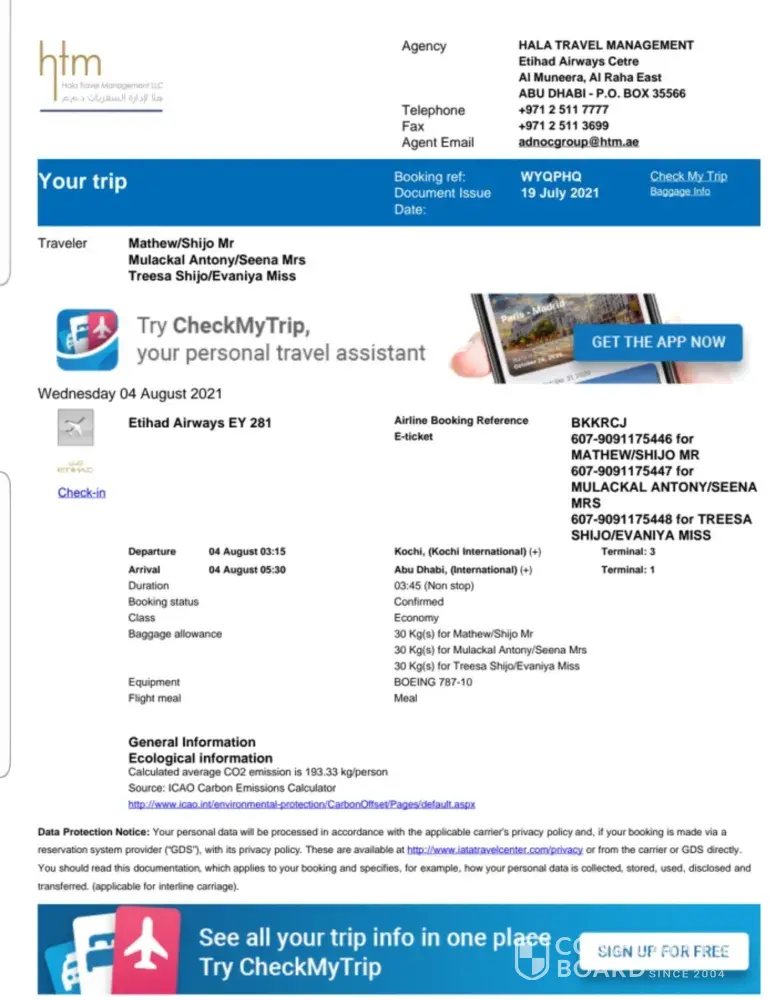 - Our flight tickets with Etihad on Aug. 28th and receipts