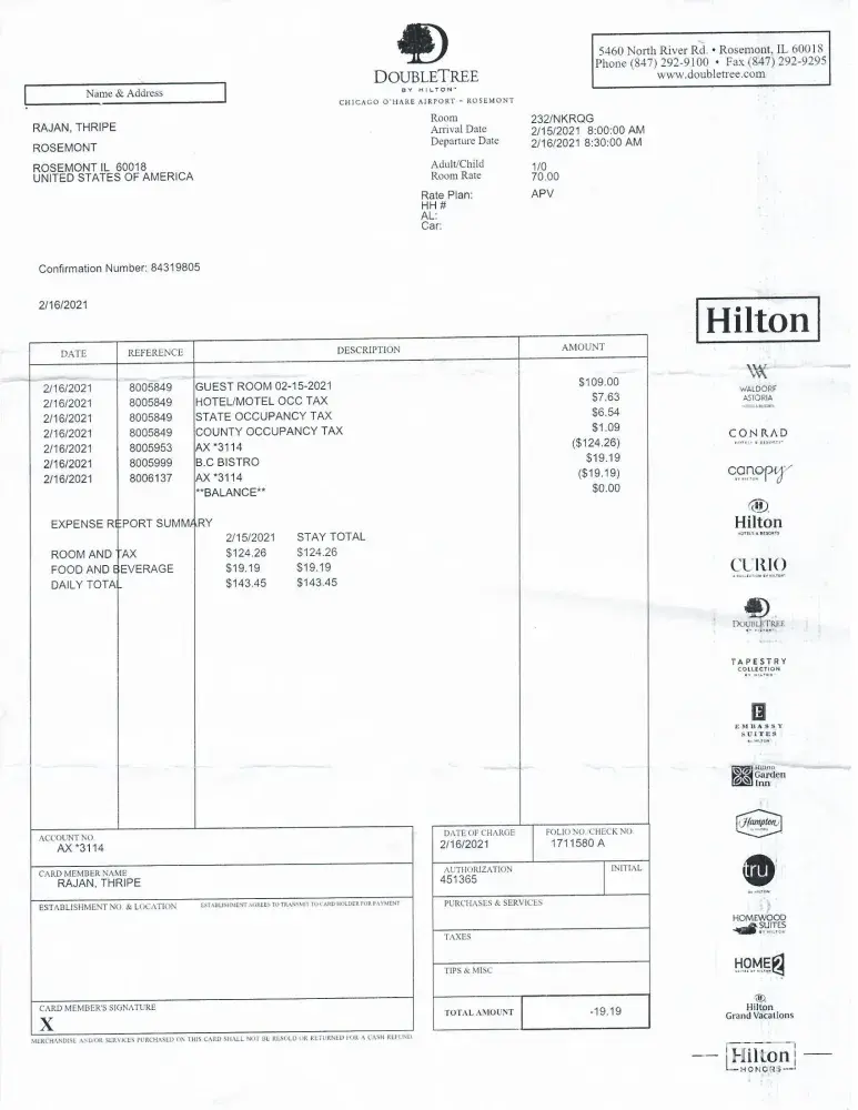 I am attaching here with boarding pass, hotel bill ( taxi were paid by another person)and voucher copy without specifiying the hotel address. Look forward for your immediate reimbursement.