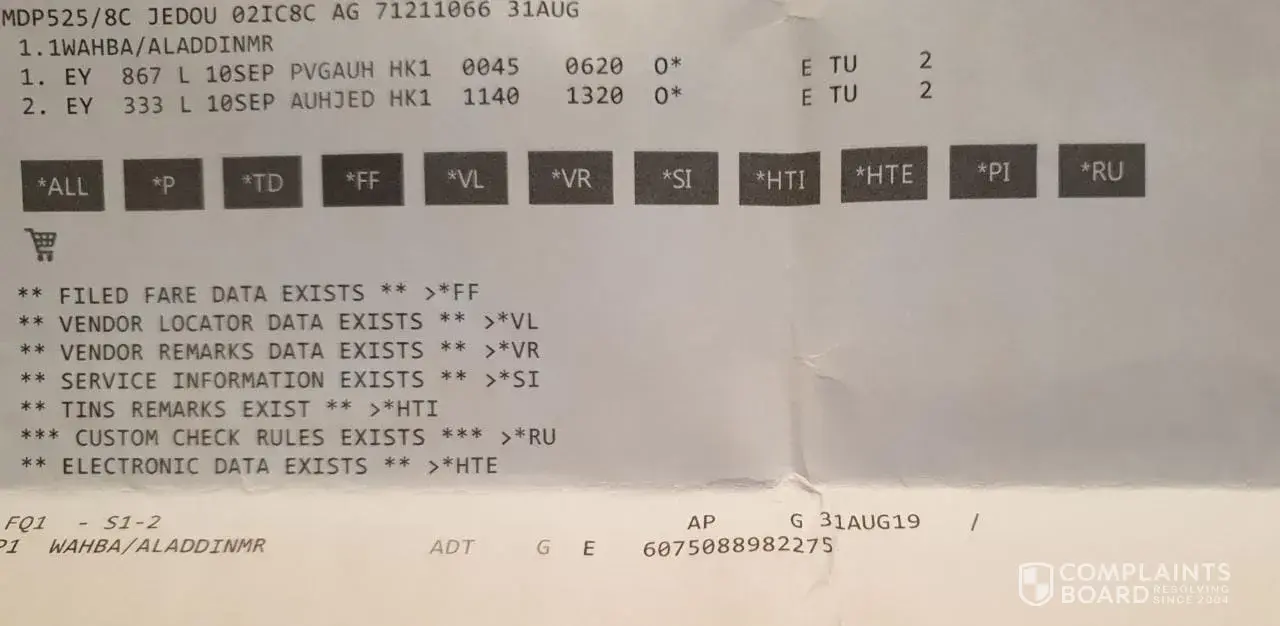 Etihad Airways has left an official reply on this complaint.