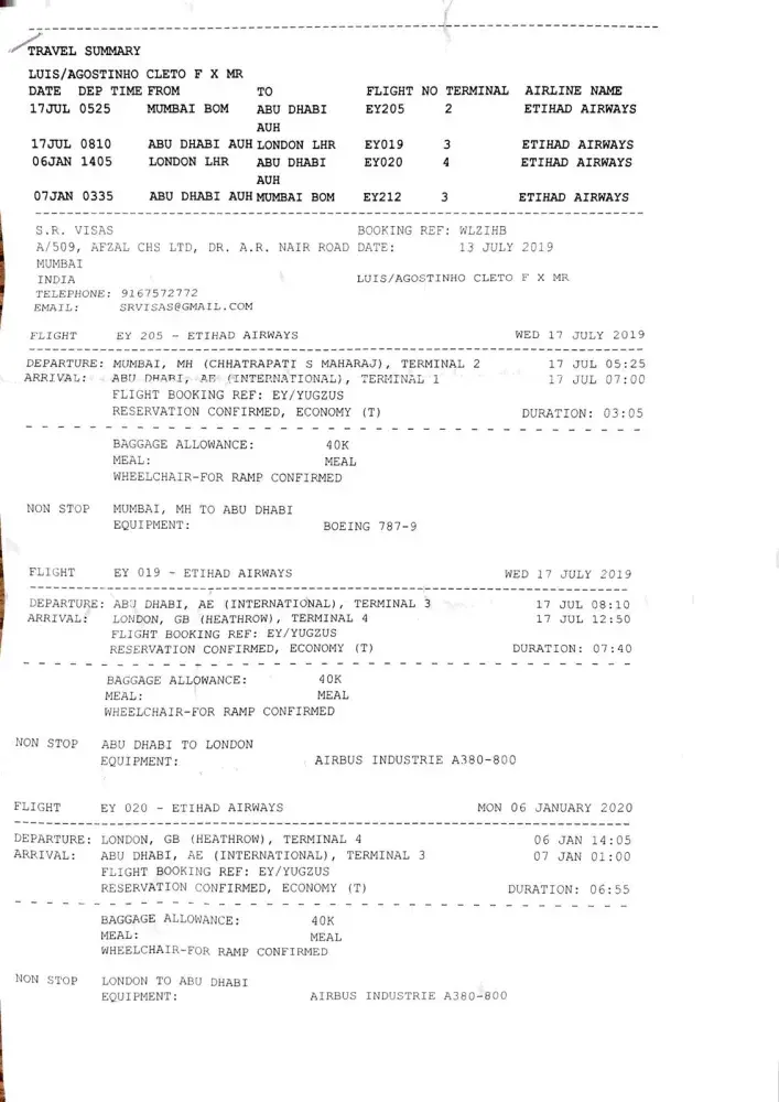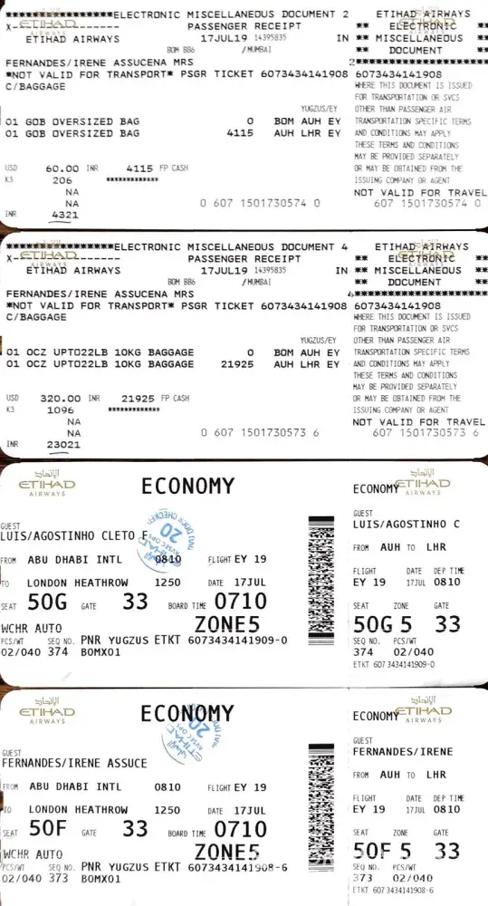 Etihad flight - Mumbai - Abu Dhabi - London heathrow Airport.
