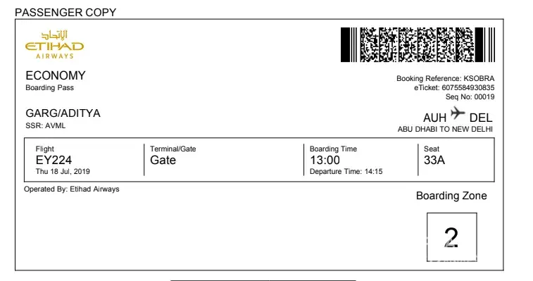 I was traveling from Abu Dhabi to Delhi on 18 July 2019 (details - boarding pass as attached).