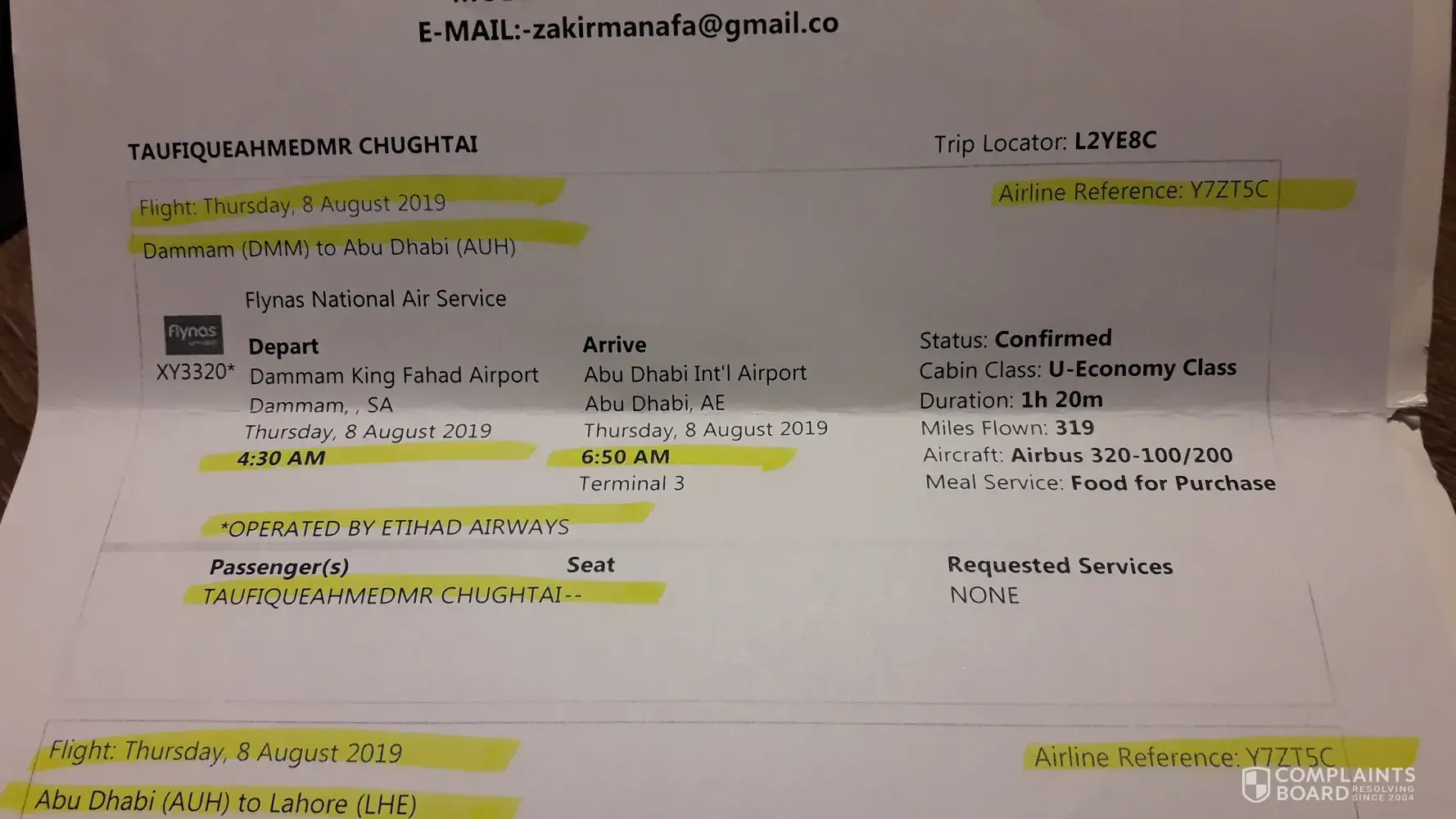 Please note that we were on Flight No: EY533 on 19th July 2019 from Abu Dhabi to Beirut