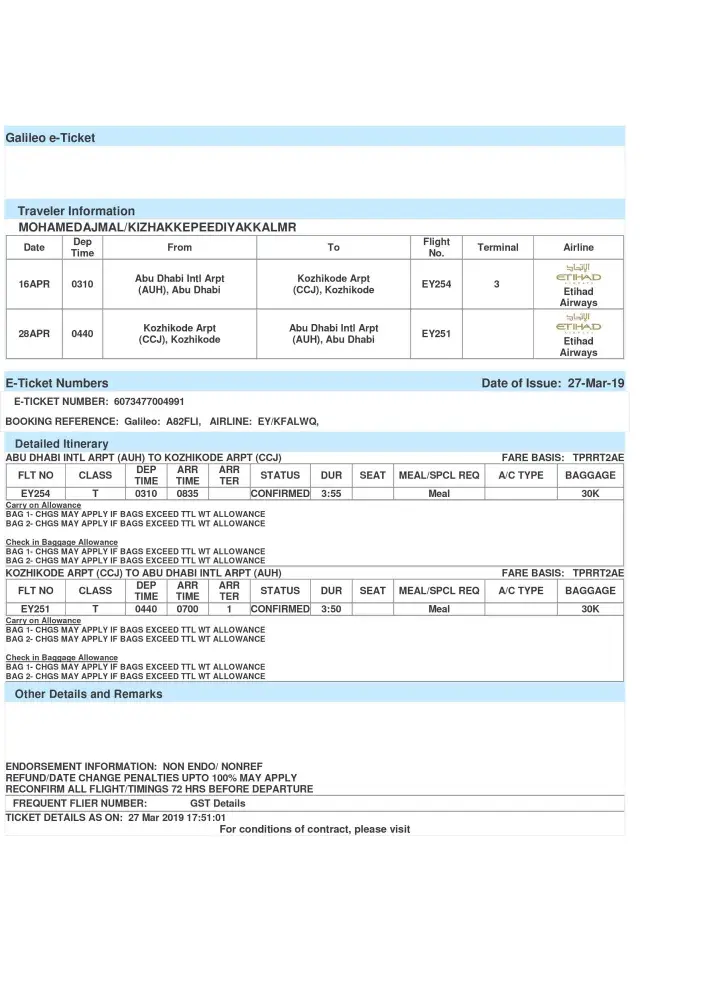 My name Ajmal from india.iam worked in Abu dhabi & i take ticket to 16.04.2019 @ 3.10 am