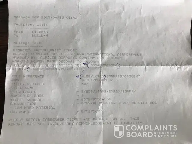 I have my honeymoon tickets with Etihad since it is know to be one of the most reputable airlines. Unfortunately, this was not the case. My flight was from Cairo-Abudhabi-Male and at the final destination, my main suitcase was lost. I have been on the phone with Etihad, emails and I have not received a single update nor an apology to compensate my anger. My honeymoon was simply ruined because of this and I have been stuck in the room for the past 2 days waiting to hear anything regarding my suitcase. this has not only ruined my honeymoon but it has also affected me physically and mentally. I will sue a case and post this worst ever experience everywhere on social media because you have been very disrespectful with your client and the honeymoon should be one of the most unforgettable trips but I ended up in my room with no clothes.