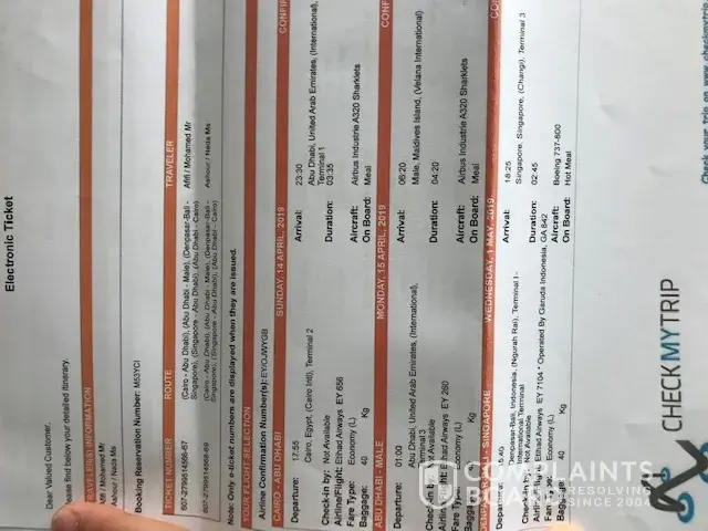 This complaint remains to be unresolved. Etihad airways have been un-kind, un-helpful and not willing to reach a fair end to this complaint and as a result, I will be looking to take this complaint forward until it's resolved.