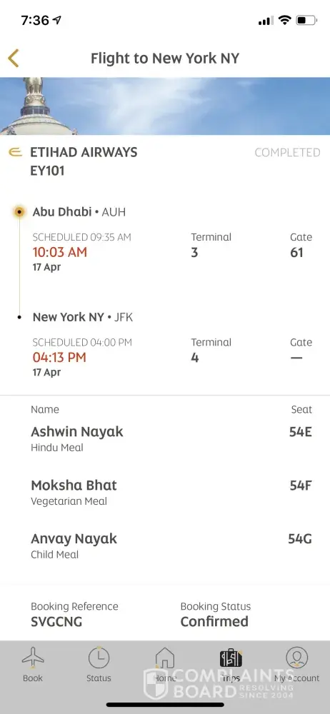 We travelled with our son who turned 2 a couple of months back and had opted for a child meal for him which we received on our flight from Bangalore to Abu Dhabi. However during meal service in our flight to JFK we were told that there was no child meal loaded on the flight as nobody had selected it. Clearly from the screen shot attached that was not the case. The flight attendant did not have anything to offer to us apart from few prices of cake and baby food. We even asked her to provide us with the menu onboard so we can pay for the food. Even on the menu they had nothing to offer other than chips and snack items which cannot be offered to a toddler as food. In the end we had to dig up our bags to find food for him.
