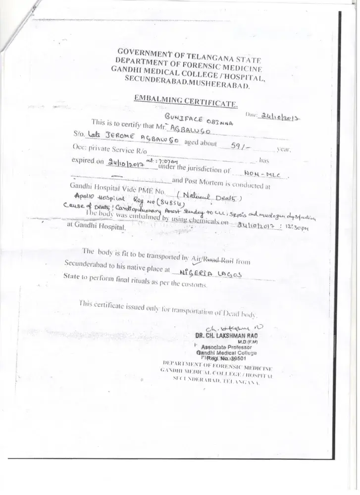 The date for the flight elapsed and we had to wait to ascertain his conditions before rescheduling the flights. My father passed away in Apollo Hospital, Hyderabad, India on the 24th of October and my mother's ticket was rescheduled for the 28th of October through the same Wakanow and an extra charge of N301, 291 was paid on her ticket.