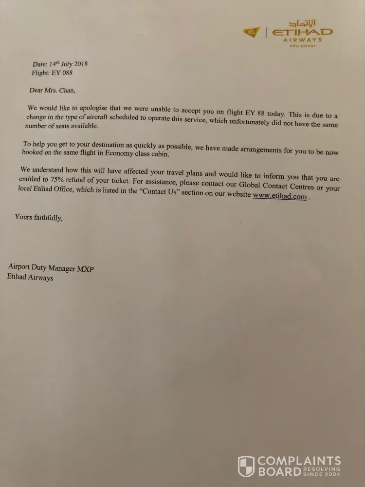 Thirdly, if ETIHAD would really like to correct this, they have 14 days to do so from June 30 to July 13. But never did we get any, ANY reach out at all. That day we checked in for our flight back home, out of curiosity we asked what happened with the morning flight, and do you have any idea how it felt like to be told that it pushed thru? After all the schedule changes, additional hotel accomodation, and cancelled meetings we had to make? Would you have any idea how humiliating it feels? Then we're told that there's even 5 empty business seats on that flight, you know how brutal that is?