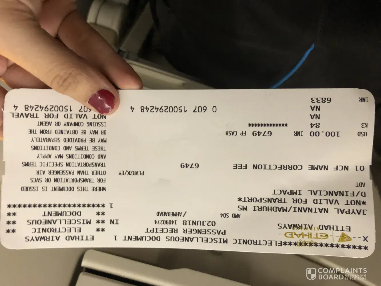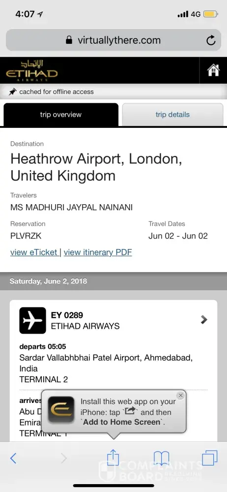 In the website when I checkin, it showed madhuri jaypal nainani. While in ticket, it showed jaypal nainani/ madhuri which was fault from their end