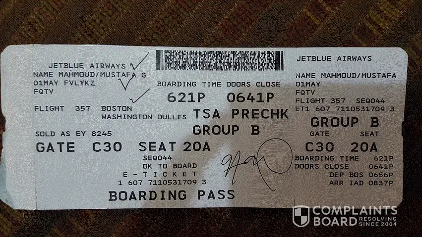 - Boston to Washington Dulles (JetBlue Airlines) Flight No. 357 - May 01, 2018