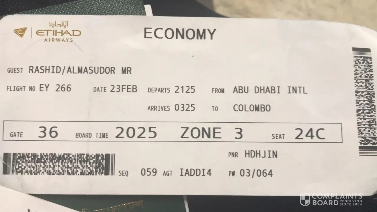 On the other hand, etihad Abudhabi office wrongly charged two three time from my credit card $ 360. The duty officer of the February 23, he showed his badly manner with me. Along with, before living the Abudhabi, I went to the help desk to confirm my boarding pass but they didn't tell me about the wrong flight.