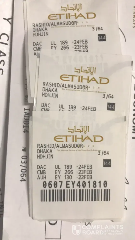 With due respect, I'm a regular passenger of etihad air. Last February 22, I flight from IAD to Dhaka. The lady who issued my boarding pass that was wrong so I missed my connecting flight from Colombo to Dhaka. I didn't get any help from etihad and the partner airline srilanka airline. Besides this, they showing the brutal attitude and fell me a deep bad situation. I've an appointing meeting which was postponed due to my absence. I'm told them issue me a connecting flight but they didn't do that. I lost my wallet and phone to the airport which belongs lot of important documents, card and contact details. With the help of a passenger, that contact with family and they arranged a ticket from Colombo to Mumbai, and Mumbai to Dhaka at Jet airway flight. That cost extra $ 427 dollar.