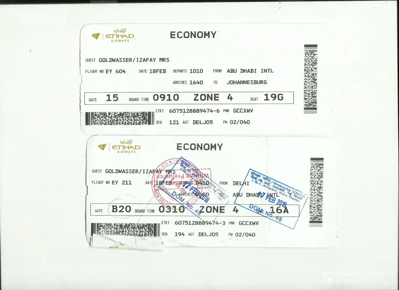 I had sent brief correspondence to ethihad as per the above case references whilst on holiday from my mobile phone, to which I received no positive feedback and no reassurance of achieving a satisfactory resolution.
