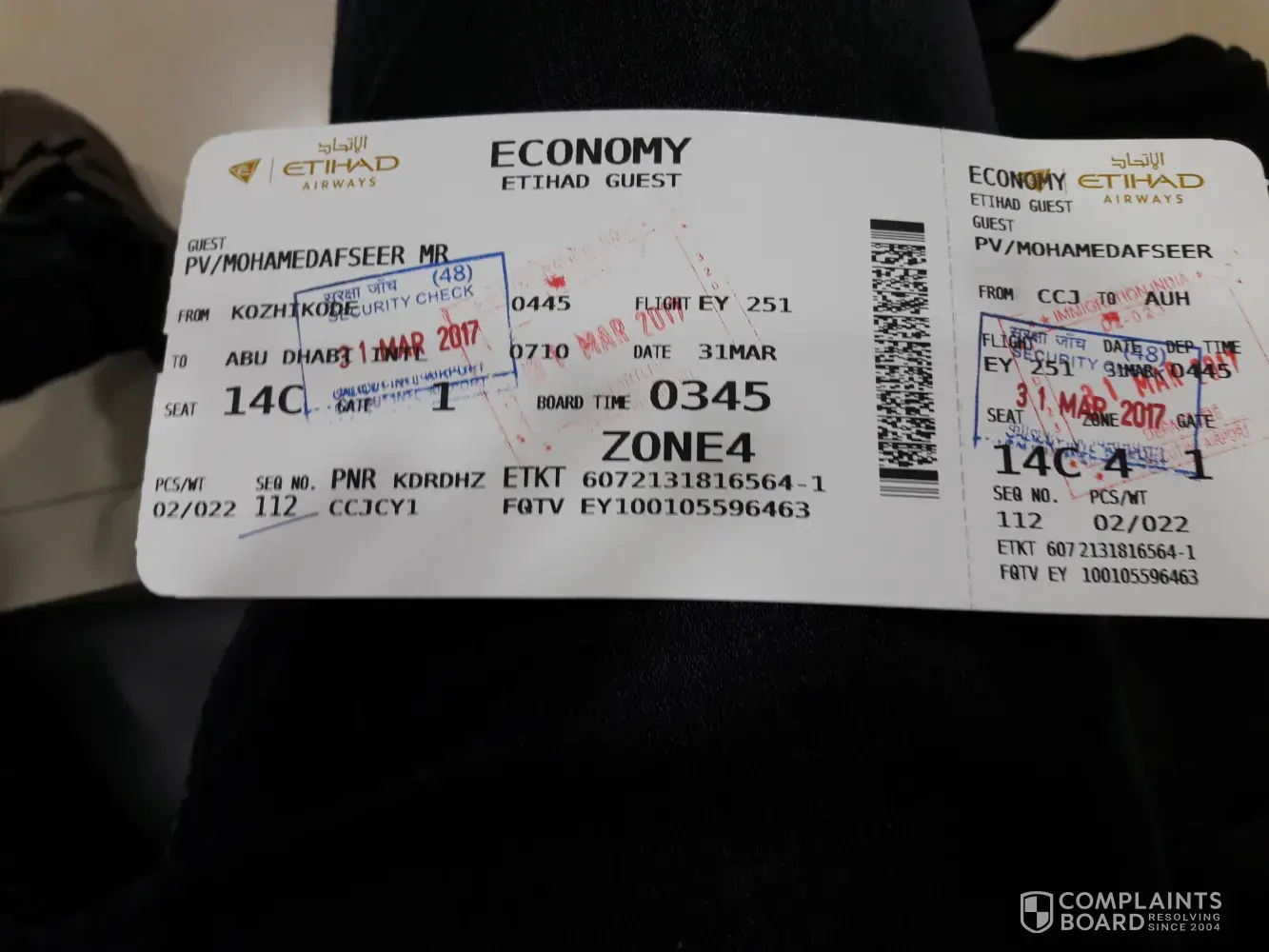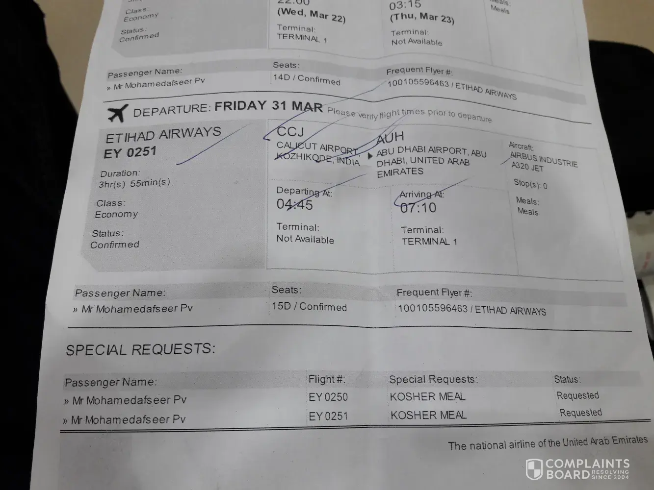 service complaint on etihad airways