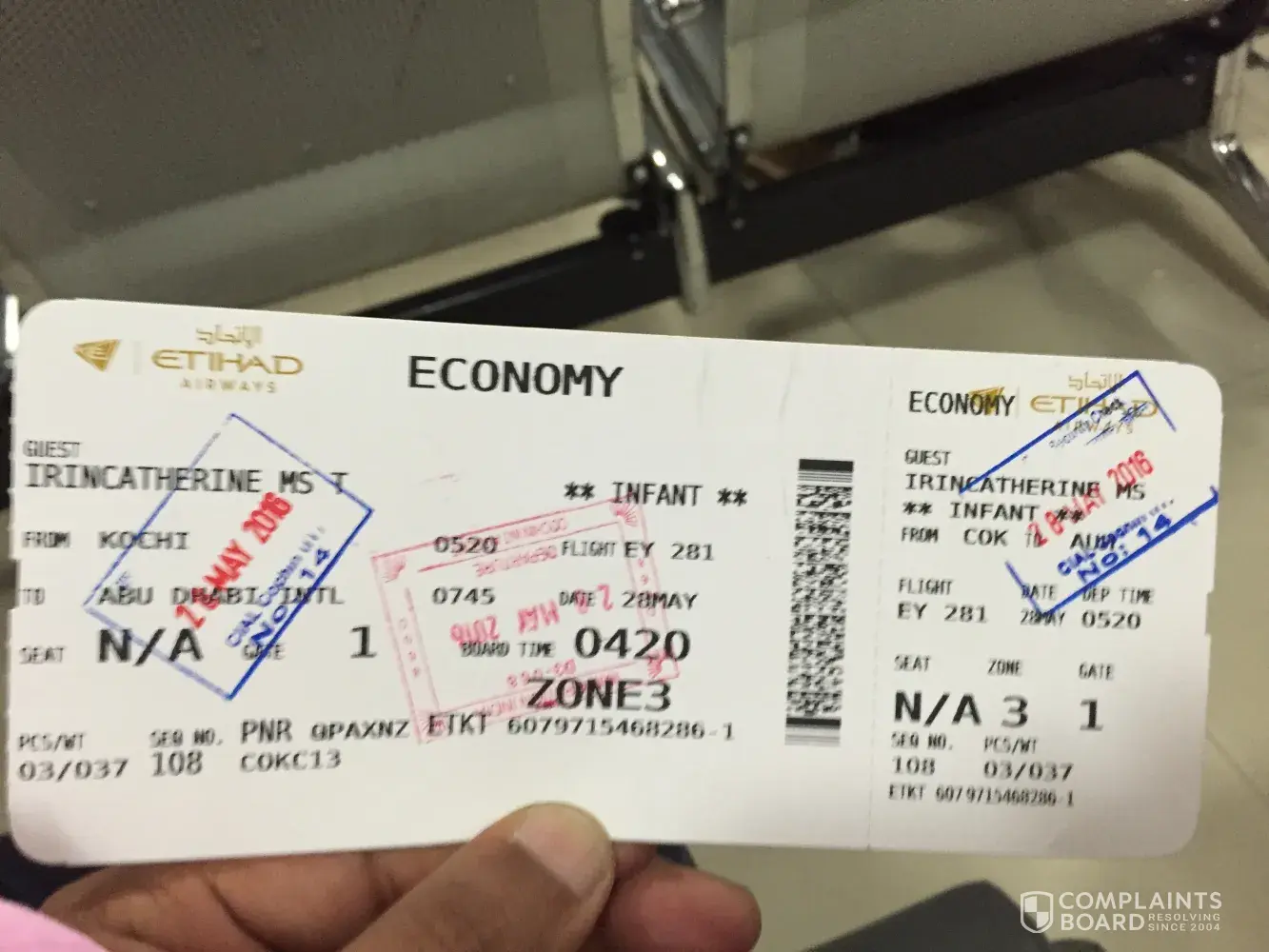 The same thing happened for my return journey also.Return journey was more difficult. I traveled with my 1.5 years daughter.When I came for boarding in Cochin, they told daughters ticket was not confirmed for journey.So I waited boarding pass section for one hour & finally it cleared. The flight delayed for 1 hour, next will be the same happened before.Around 7 hours I waited in Gate no:35 in Abudabi Airport.Baby was too tired.