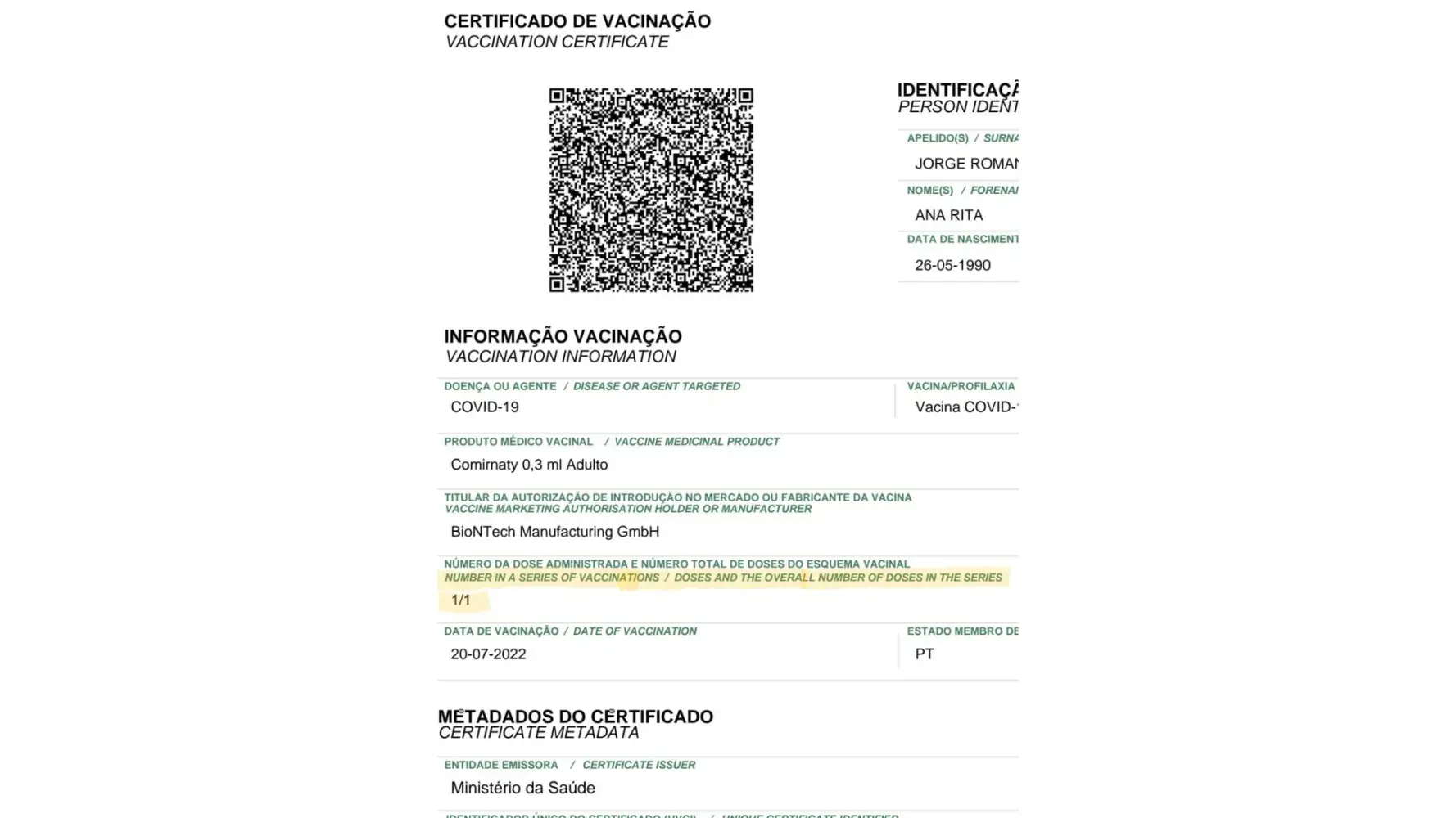 I finally presented all my documentation and they told me I couldn't board and closed the gate. The excuse was that I was unable to show a valid COVID-19 vaccination certificate. I've attached the COVID certificate that I presented at boarding which is a certificate issued by the Portuguese National Health System, with an English translation and clearly stating that I am fully vaccinated against COVID-19 (1/1 = fully vaccinated).