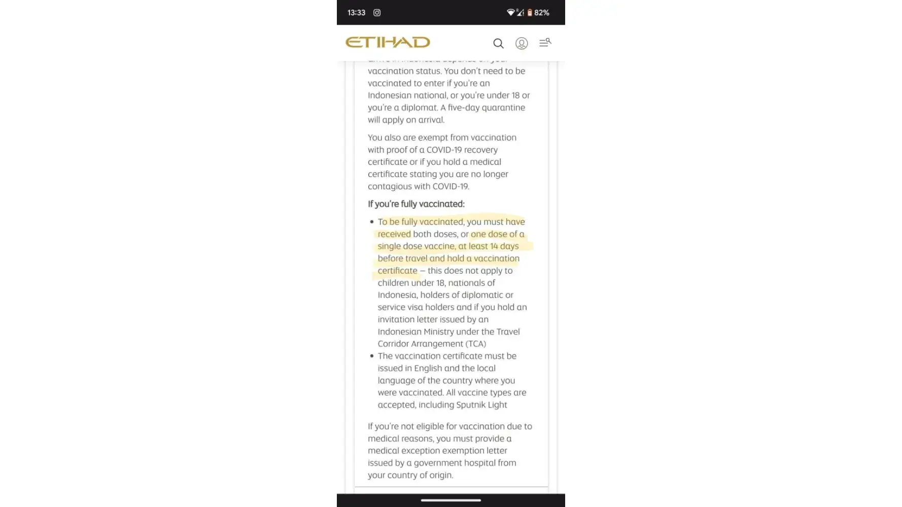 - that I needed to get a document from my doctor saying that I can fly - when that is only necessary for people not eligible for vaccination, as per Etihad's website. No other passenger was required to show this document when showing the vaccination certificate.