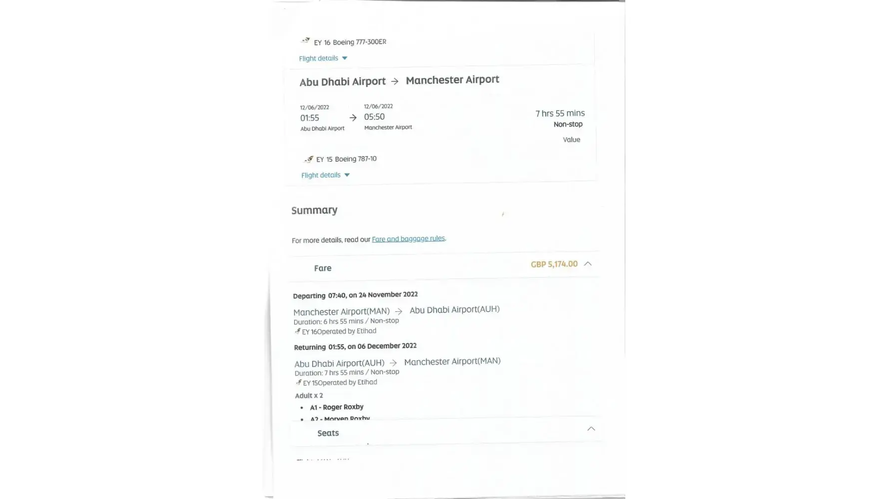 Flight from Manchester (EY0016) to abut dhabi (EY0231) to Islamabad