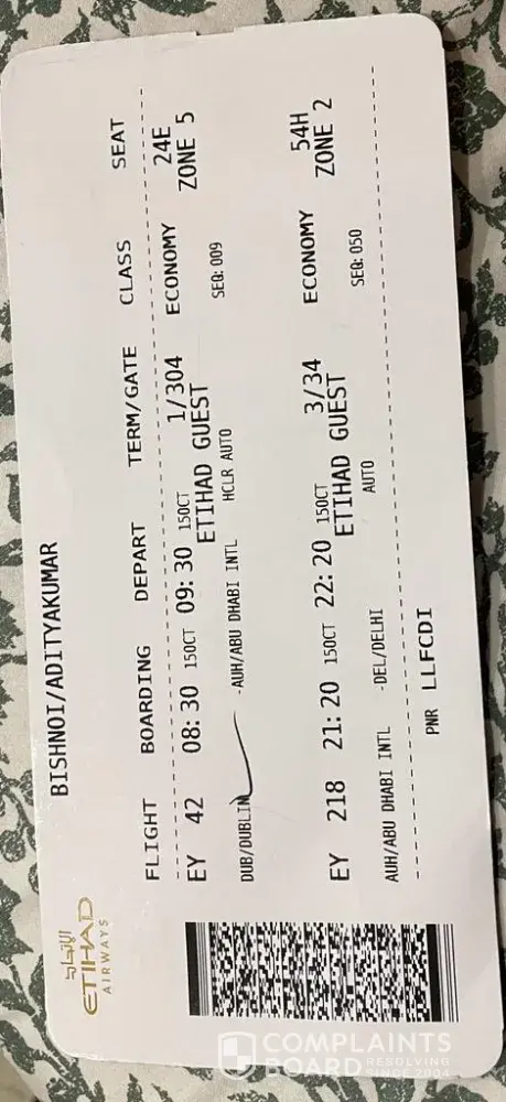 I flew with Etihad from Dublin to New Delhi on 15th Oct 2022 under PNR - LLFCDI.