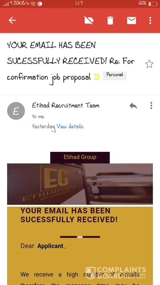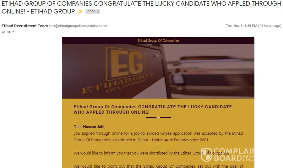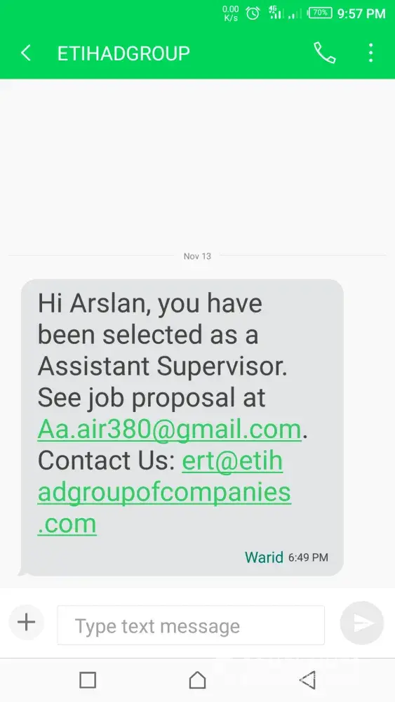 received job proposal via sms and email from etihad group of companies, is it real or fake?