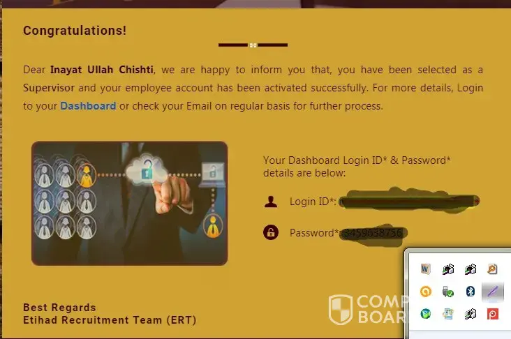 LETTER IS AS UNDER ETIHAD GROUP OF COMPANIES CONGRATULATE THE LUCKY CANDIDATE WHO UPLOAD THERE RESUME ON JOB SEEKING WEBSITE! Dear Naseer Ahmed, we are hereby to inform you that you applied for a job on job seeking website, we went through your resume, because of which the ERT (Etihad Recruitment Team) are highly impressed with your background and...