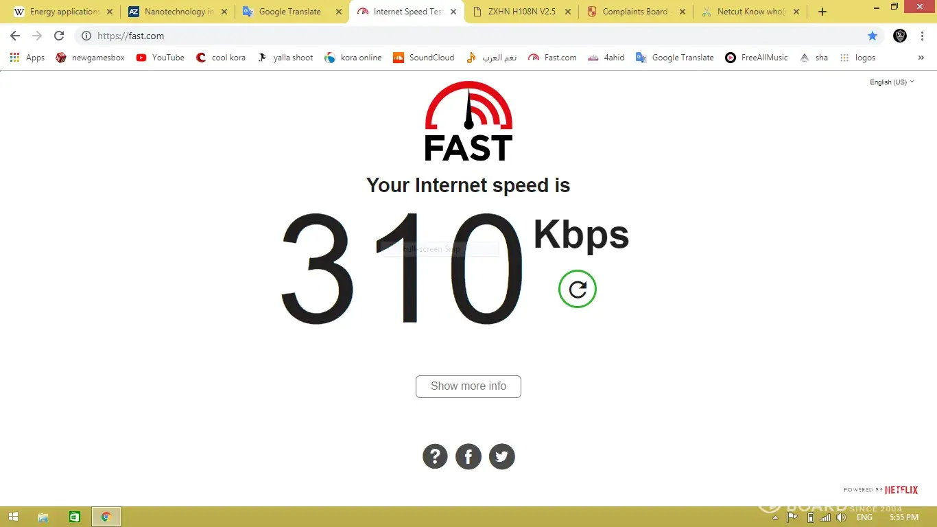 برجاء العلم ان سرعة الانترنت الارضي Ù…Ù†Ø®ÙØ¶Ø© جدا Ùˆ هذا الشيئ ÙŠØØ¯Ø« بشكل متكرر علما بأن السرعة المقررة هي 2 ميجا بايت Ùˆ ان اقضي سرعة يصل اليها الانترنت الان هي 300 ميجا بايت برجاء اتخاذ اللازم