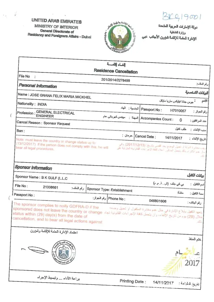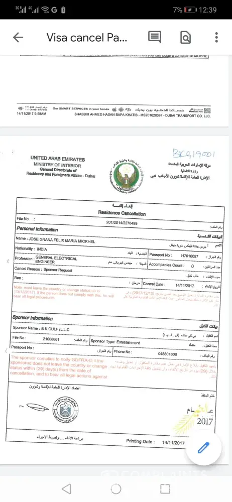 I worked in Dubai last few years 2011 to 2017. I cancel my visa and exit from Dubai last 2017 Nov. After my exit surprisingly I received mail states 3 account bills in my name all are used around 2500AED. When I checked with the Etisalat team there replay is some one used your emirates Id. Then I contact UAE emirates ID department there statement is clear once I canceled my visa my emirates Id will cancel automatically (attached my visa cancel paper here) . I am following this issue since June 2018 but no solution as of now. But I am receiving mails from collection department frequently (refer snap shot) . I already followed 1 year in this same issue I have all my mail followup copies. I need the solution immediately in this issue.