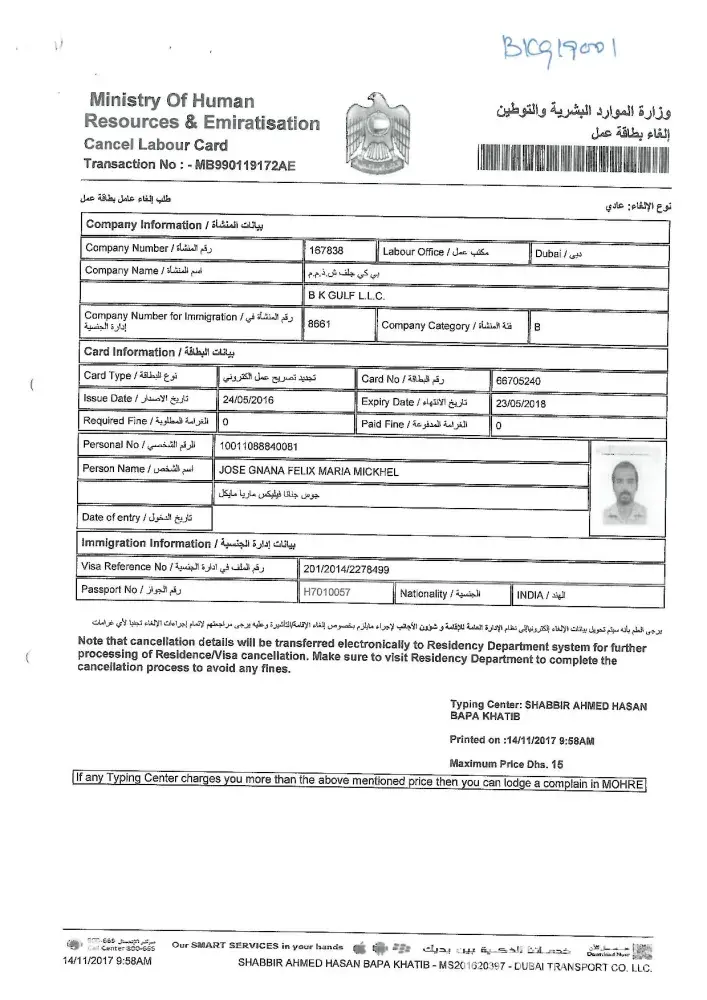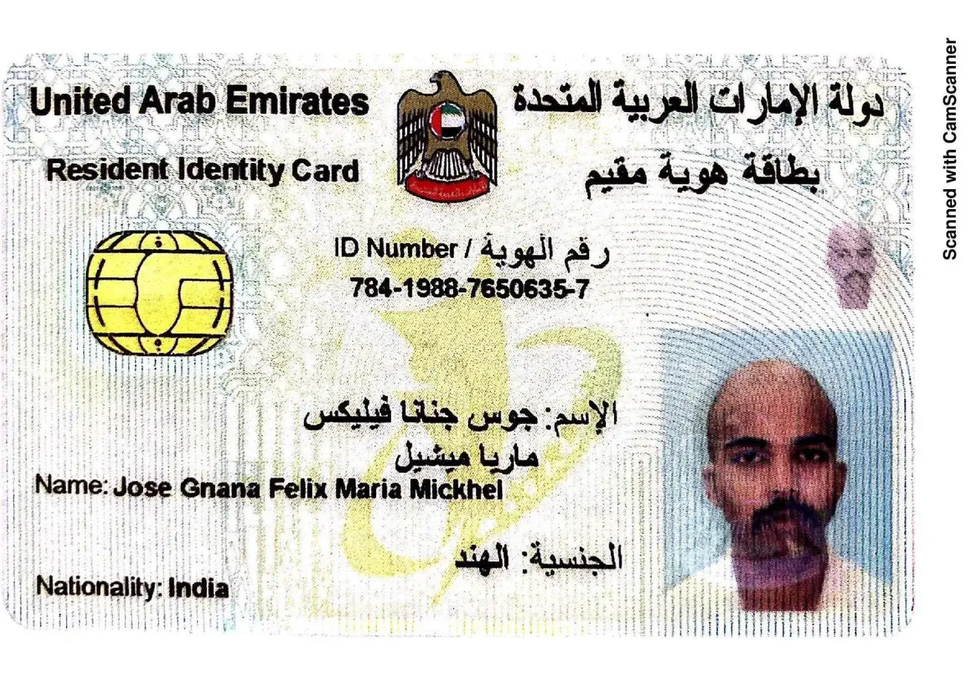 My UAE ID No. : [protected], Mahesh Ramachandra Rao