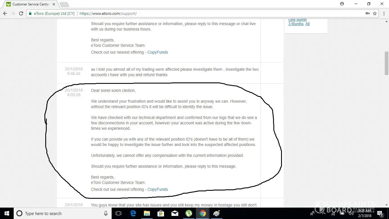 After this, I post on etoro asking about how to complain about this, and I blocked.