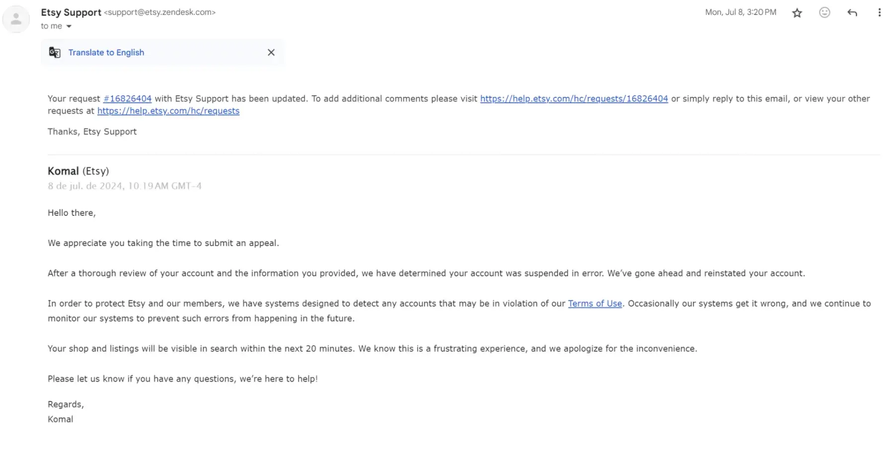Read full reviewEtsy unfairly suspended my shop and is not providing any explanation!