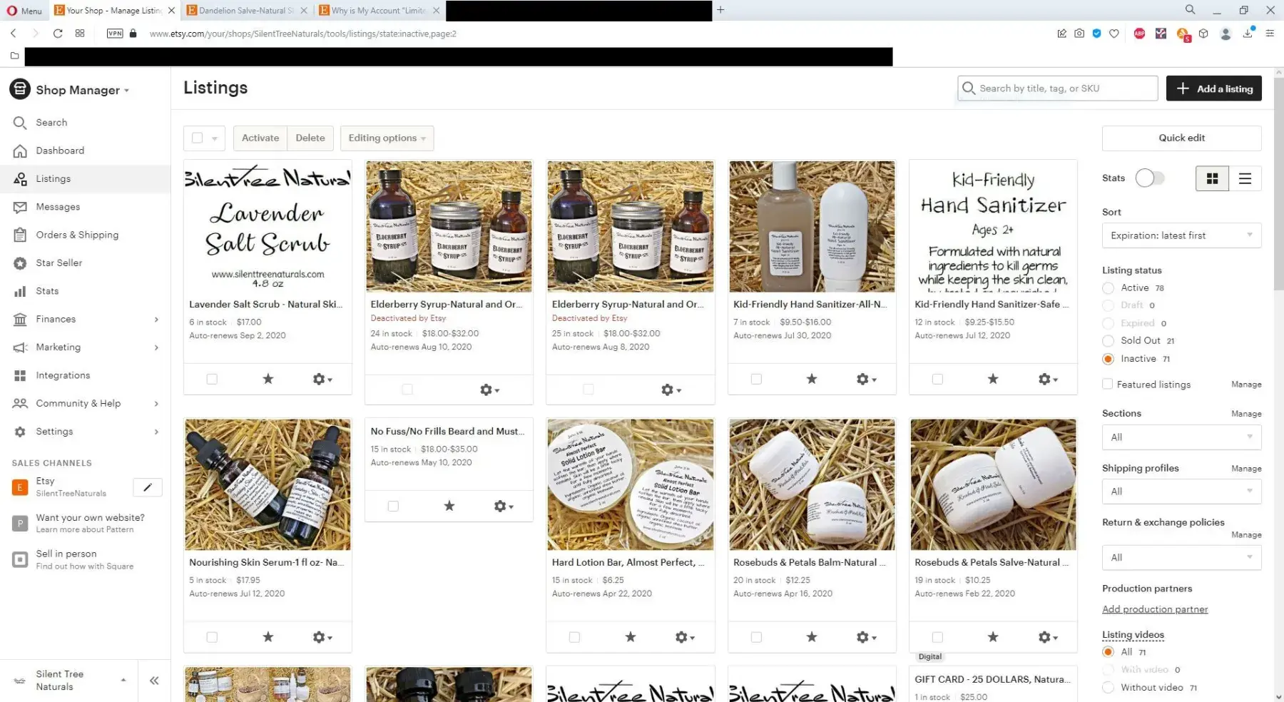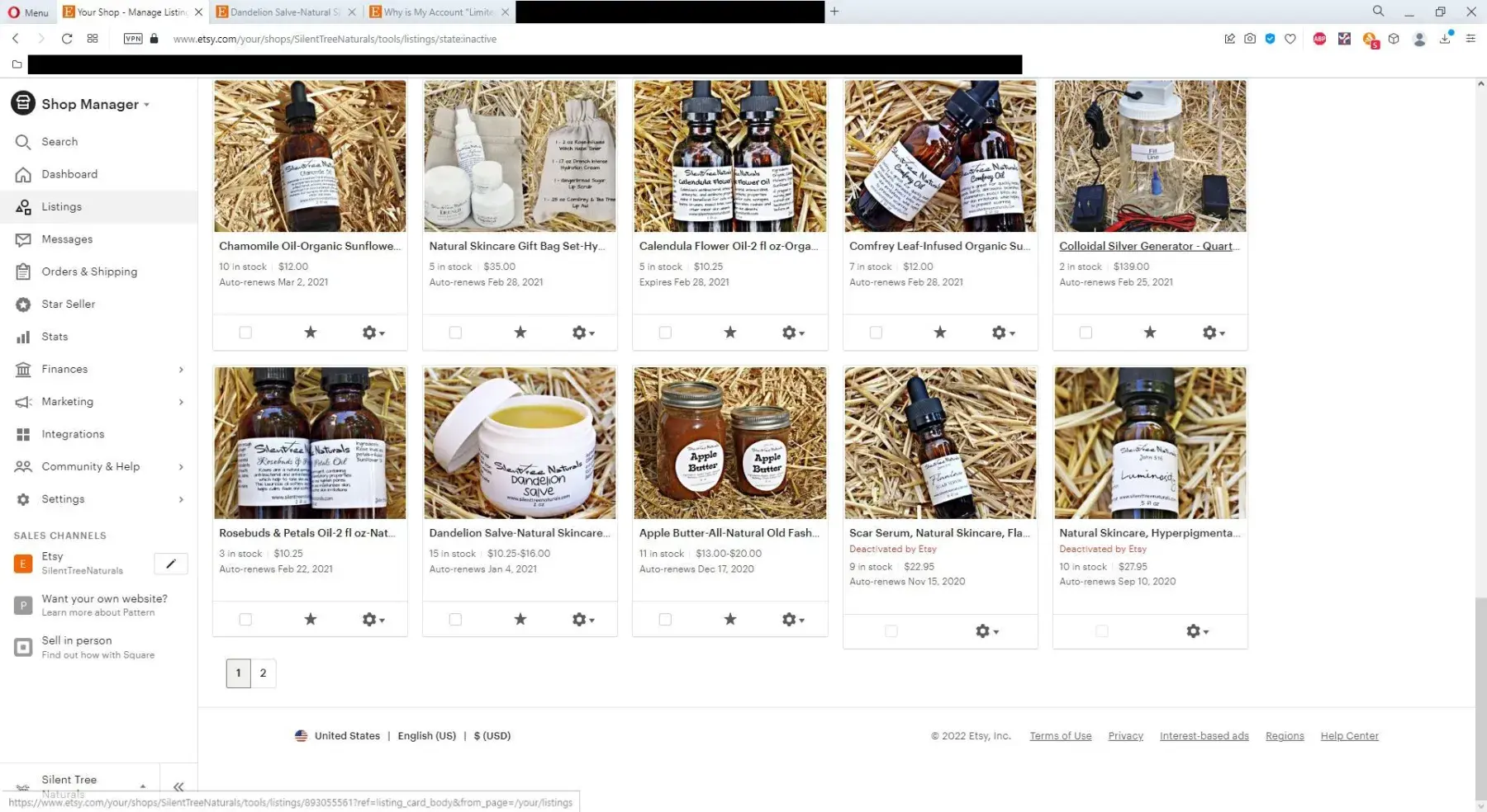 Other actions perpetuated by Etsy against my shop...Etsy randomly "deactivates" listing, stating that I am making "medical claims", which I do not. I am very careful with my wording. What makes matters worse, is there are Etsy sellers who actually DO make medical claims but they're product listings are still live and they are making a lot of sales, to boot. Why does this rule only apply to my shop?