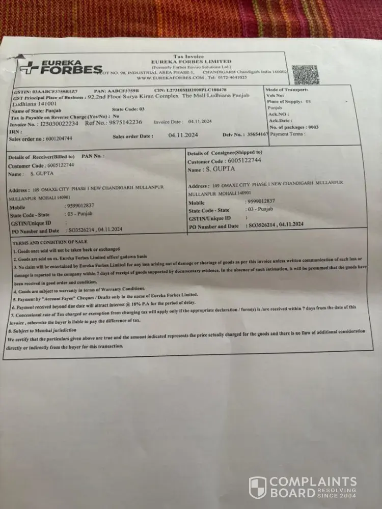 Our conclusion: After a detailed review, ComplaintsBoard finds Eureka Forbes to be a trustworthy company. Although there's a 23% resolution rate for customer complaints, which deserves attention, Eureka Forbes is known for their high standards and safety. If you're thinking about dealing with Eureka Forbes, it's wise to check how they handle complaints.