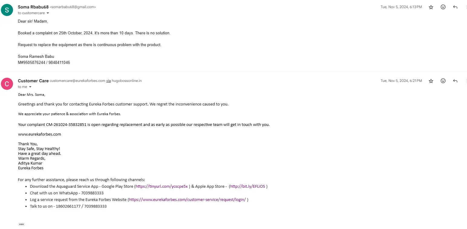Eureka Forbes Pathetic customercare@eurekaforbes