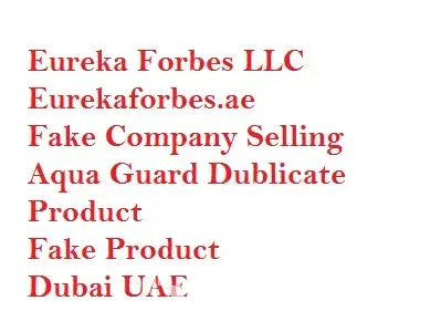 Eureka Forbes LLC is Saleing Aquaguard Duplicate Product in Dubai UAEEureka forbes company in Dubai & Ajman, Sharjah not Original Company
