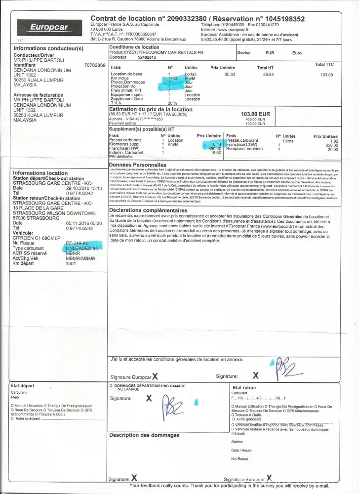 When I sent a complain mail to Europcar customer service, they didn't refund me of course, since I signed the contract.