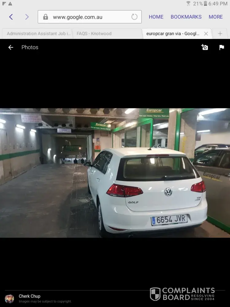 They have since emailed us the photograph of black scratched on the left bumper wheel well, damage that was already there when we picked the car up and that we had been shown as already on the vehicle report.