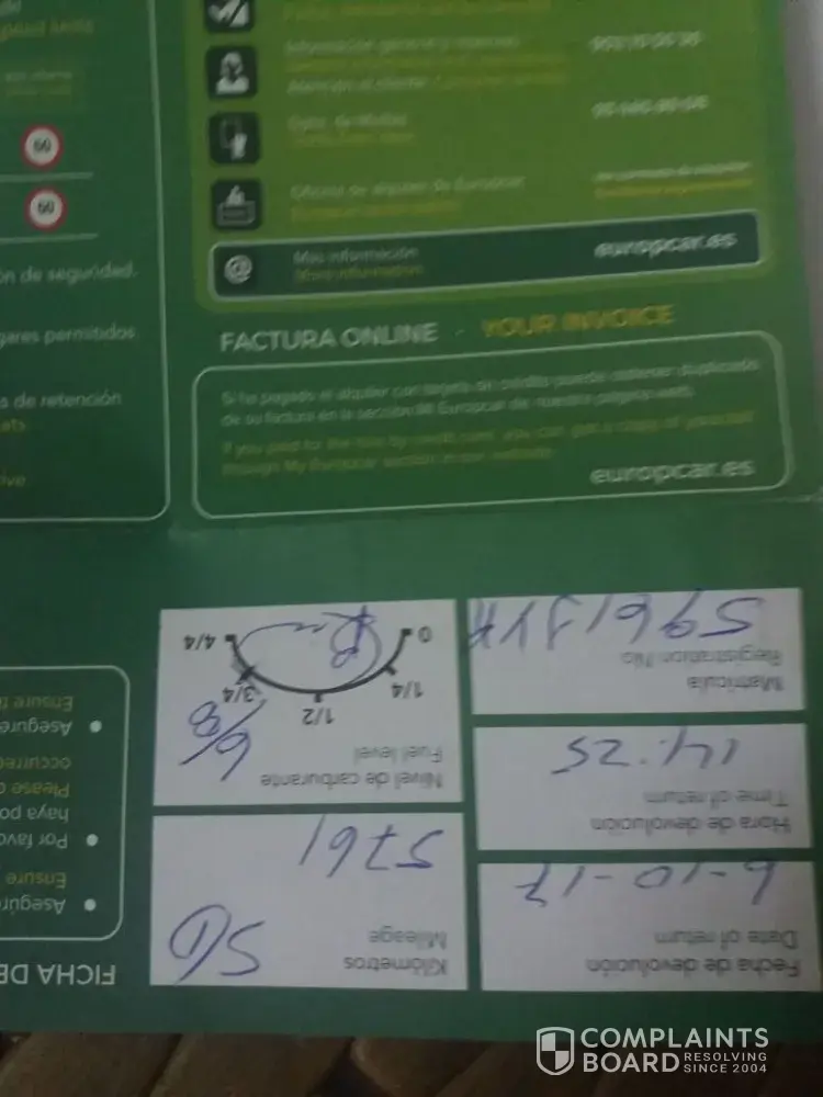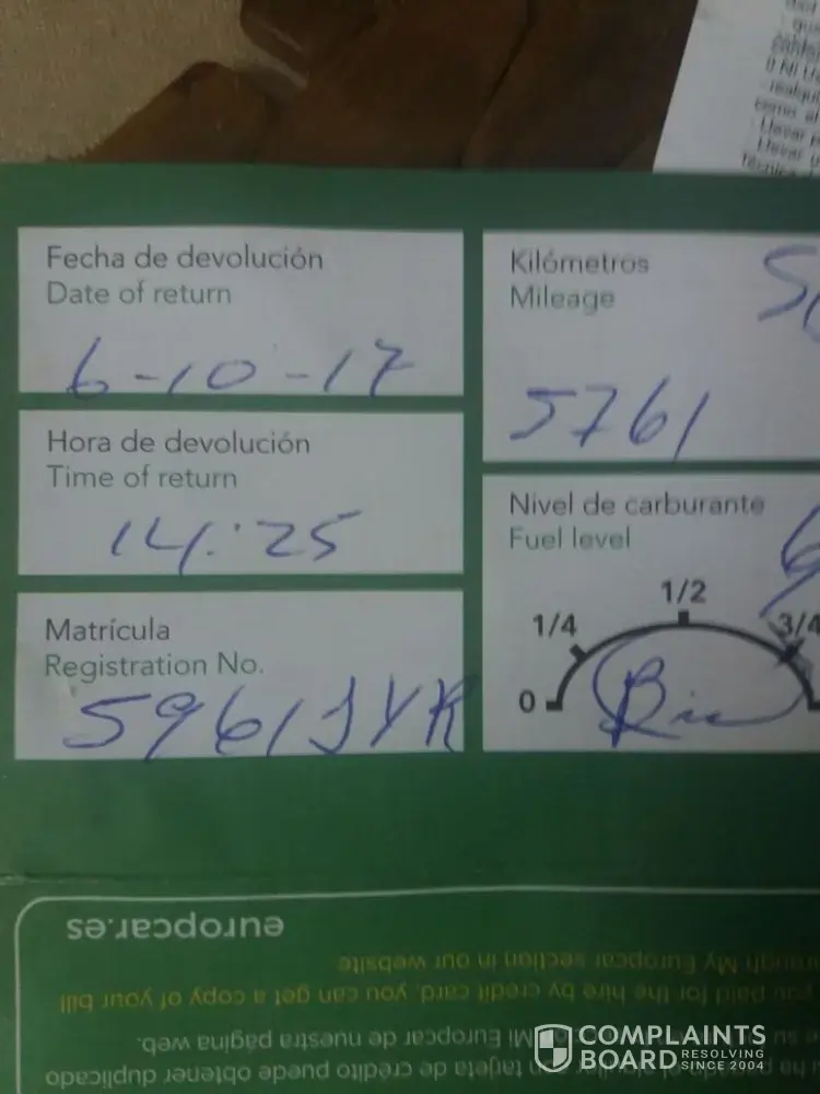 We hired a car from Barcelona Gran Via on the 1st of September and returned it to Barcelona Airport on the 5th of September out of hours. When we picked up the car we check the damages and inquired about the front left bumper with the lady saying yes that was recorded on the contract.