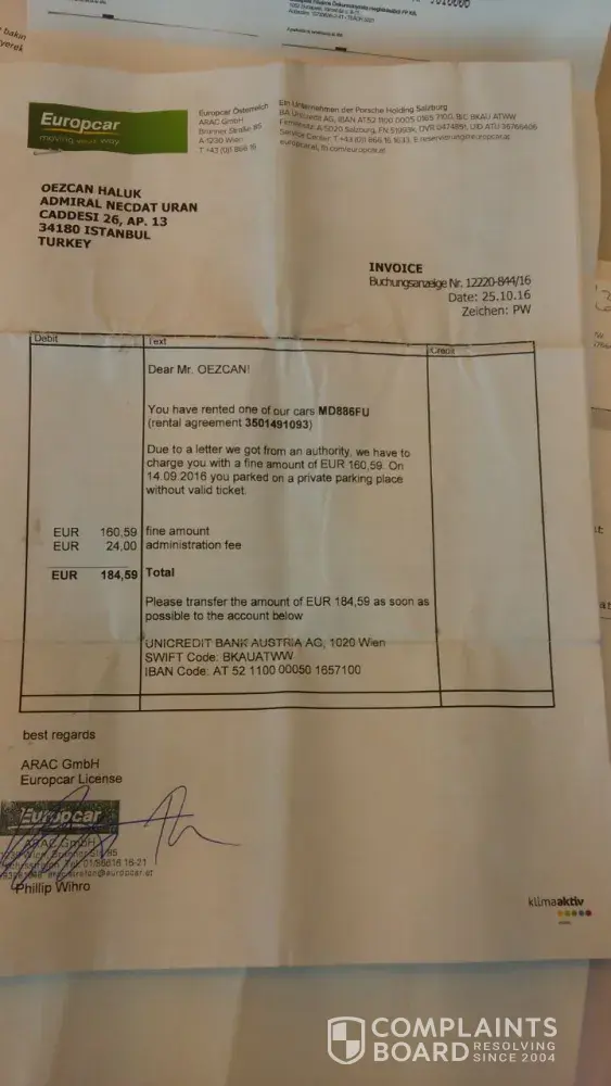 Europcar changed me 1677 USD for 5 Days rental for NOTHING WRONG .