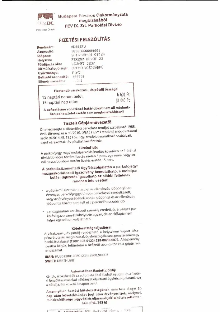 14/09/2016 I parked on a private parking place with valid ticket in front of the swİng hotel.
