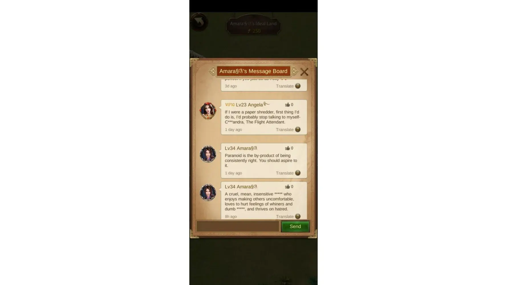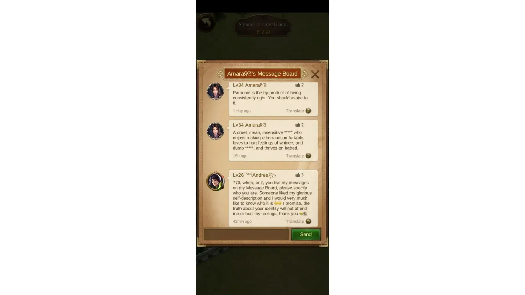 I've noticed along with other teammates that a player with multiple accounts keeps making inappropriate messages whenever they could. We noticed even a pattern that this players constantly creating alt accounts using the same disrespectful words and trying to abuse and gaslight everyone in an attempt to make us believe that what they're doing is totally normal. The accounts that this player own and that we knew about are : Angelaྀ࿠... â¦Amara§༊ ... ༺Andreaê§‚ from ALF alliance, server 770 . I'll share the captures to confirm these behaviors .