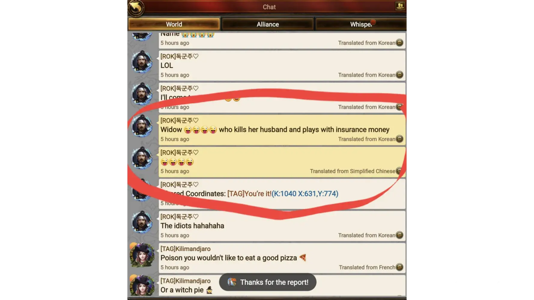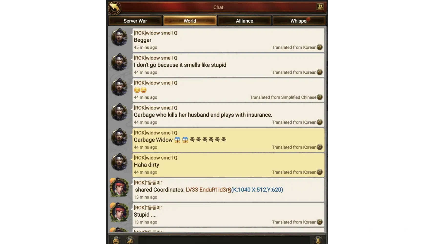 I am thoroughly disgusted of the game. I deleted it and asked my friends who were also getting harassed by this top paying players to do the same. I would NEVER recommend this game to anyone and if I find anyone playing it, tell them too about the fraud things they do. NO ACTION is against these players, there is no restrain on this TOP PAYING players behaviour and in fact they seem to encourage this behavior! I have suspicion that they are the staff or employee. This was the most horrid game experience I had and I will make sure anyone in my network who plays this game to bring awareness to them about the reality of this game.