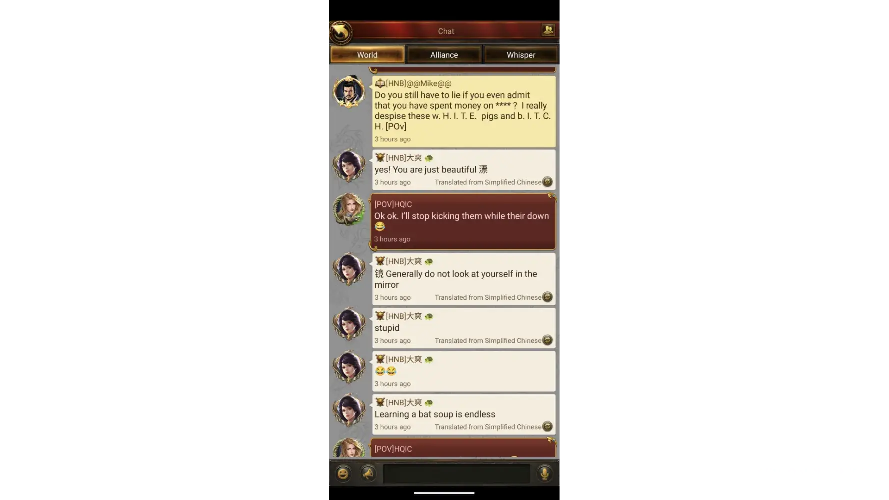 Still, a growing issue, customer service at Top Games has a canned response when you send them screenshots of Racist Sexist remarks, and it never gets escalated. App store reviews citing this as an issue will be deleted. Even went as far to reach out on LinkedIn to escalate the complaint to