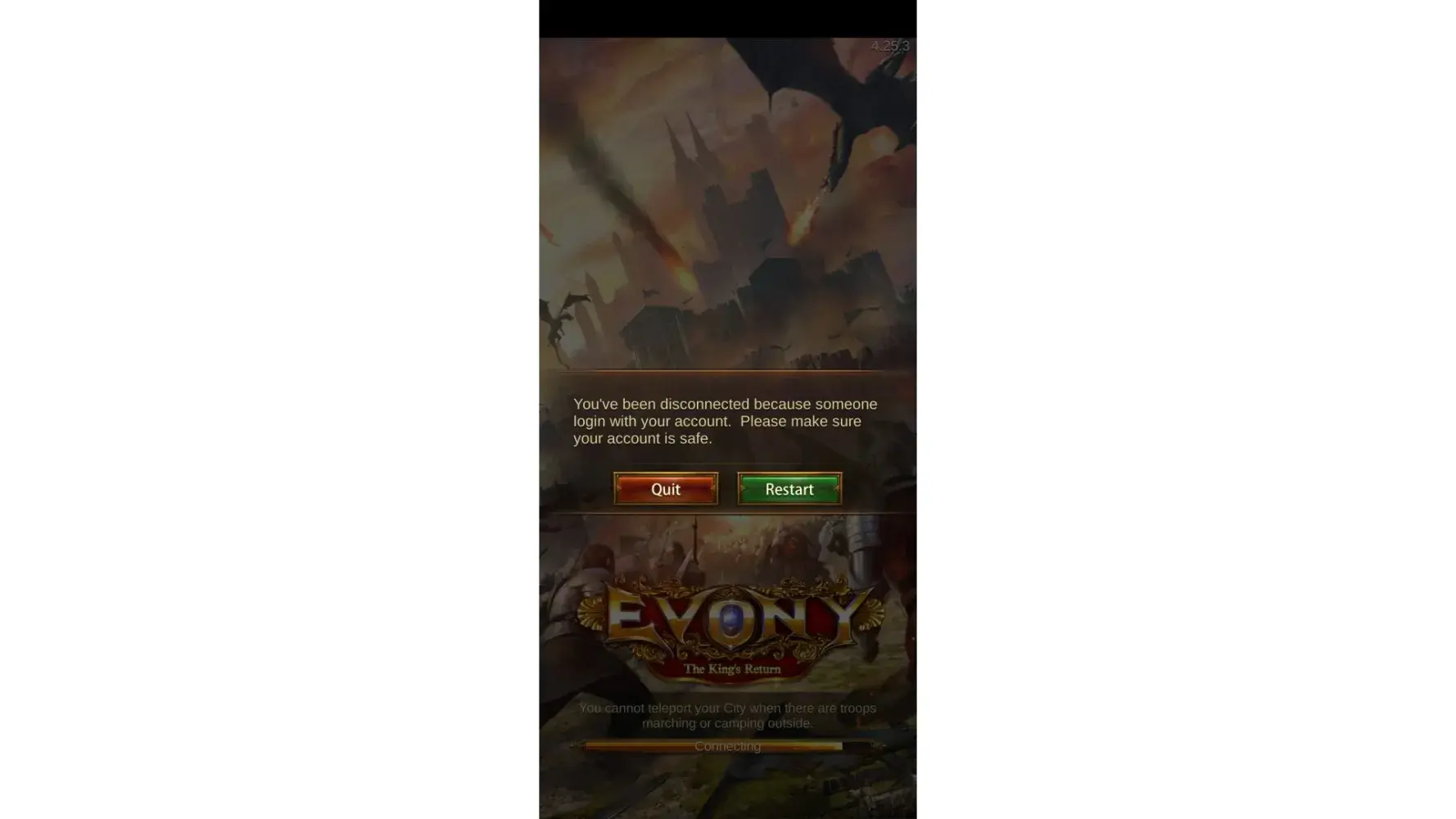 Can someone please fix this ASAP, I've missed out on Undead, Battle of Constantinople, getting teleports from attack on alliance castle, my bubble dropped, etc.