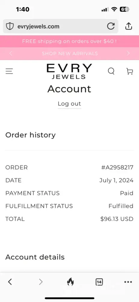 I placed an order with Evry Jewels on April 6, 2025, and the shipping time was quoted as 1-3 business days. It is now April 11, 2025, and I still haven’t received any confirmation that the package has been shipped, nor has the tracking information been updated. I’ve emailed multiple times and have received no response, after being told the team would be...
