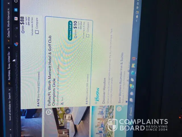 The Expedia Site is showing : Dallas/Ft. Worth Marriott Hotel & Golf Club Champions Circle as $10 per night. However, when I went I wanted to book it for such a cheap price for the next 10 days.. However, When you click the button, the price jumps up to $111. This is a case of false advertising