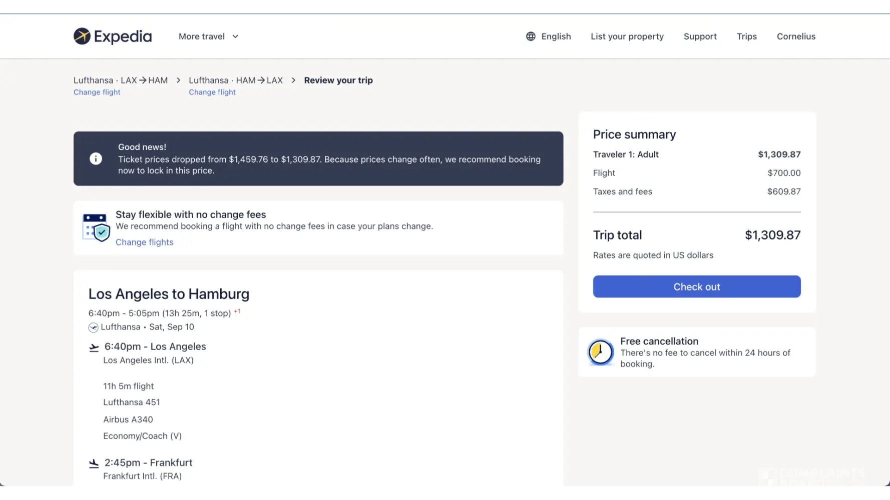 Booked flights through Expedia on July 25, 2022, and paid extra for cancellation