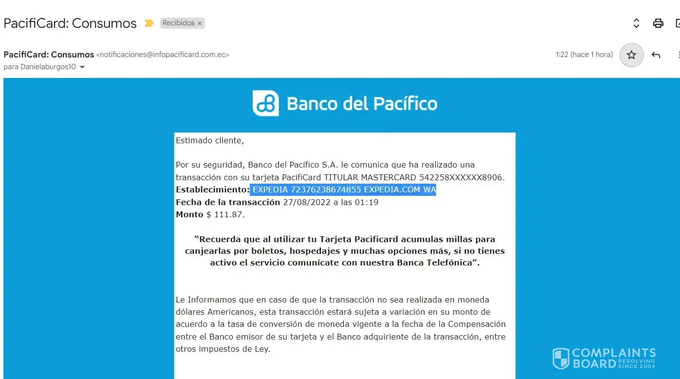 However, I receive a payment transaction EXPEDIA [protected] EXPEDIA.COM WA on my credit card of $111.87.