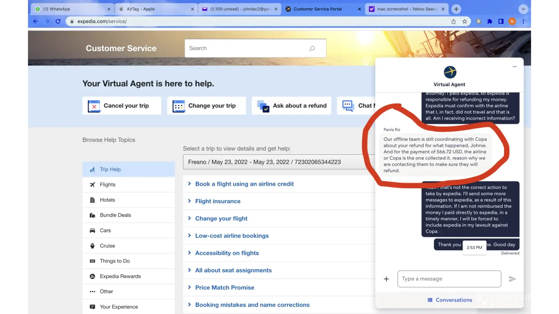 I have not found a way to reach anybody at Expedia to resolve this issue. I all that I get is an automated response.
