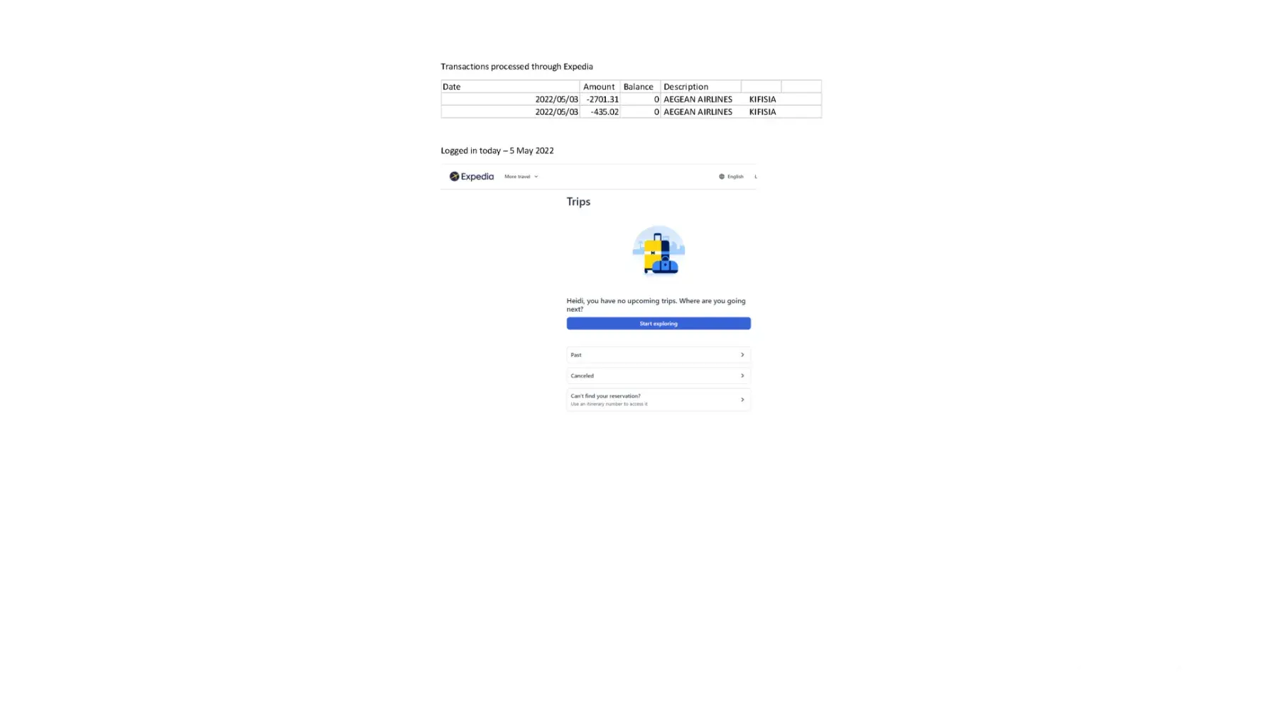 Today is May 24, Expedia tells my family, that there is no flights available. Again, Expedia submits to Air Canada asking them to look for alternative flights.