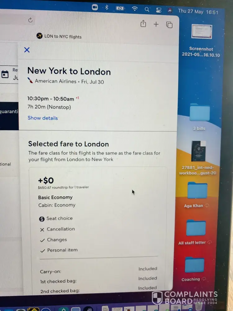 Expedia clearly marked the price for this flight as including an item of checked baggage (I have photographic proof of this). Only after making the booking were we informed this would cost extra. However, Expedia offered no way of immediately cancelling the booking online and referred us to the customer helpline which told us we could expect a 4-hour wait before anyone answered. Moreover, the "call back" function was not working and Expedia simply terminated the call when we tried this. I want an immediate refund!